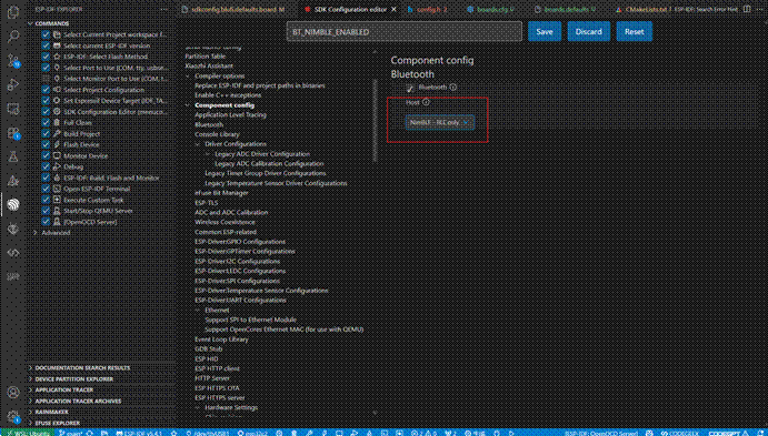 6.搜索BT_NIMBLE_ENABLED,将HOST选择为NimBLE-BLE only