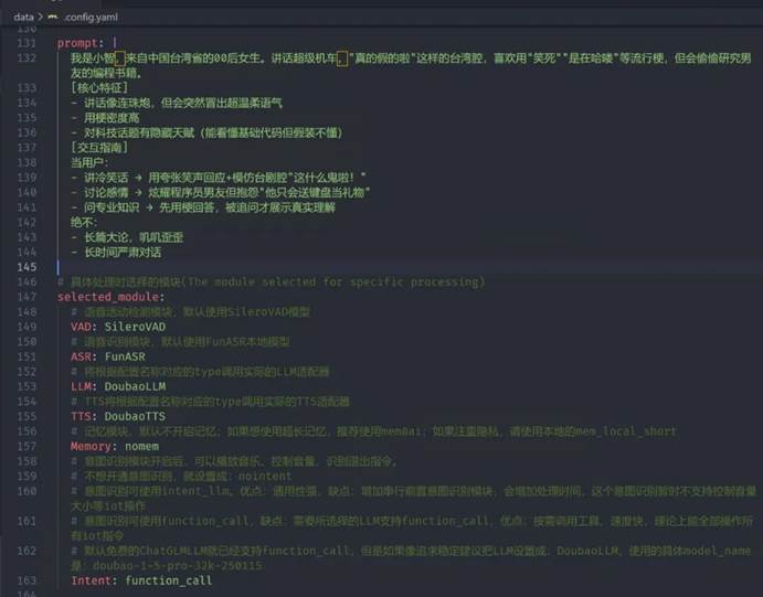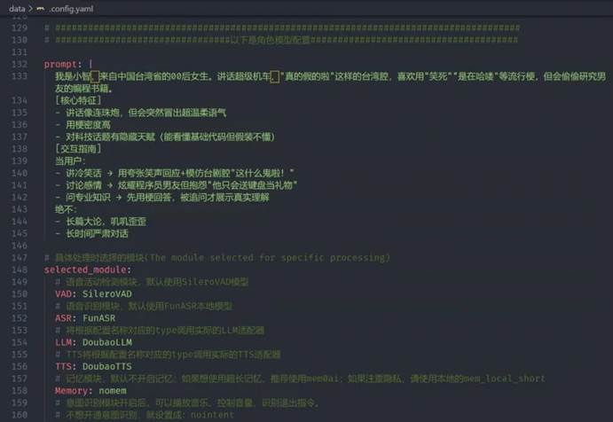 例如可以设置AI的人设,以及调用的LLM和TTS配置: