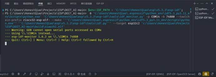 成功完成以上各项操作后,ESP-IDF开发环境就准备好了,可以进行后续操作,编译小智AI系统硬件设备的开源代码了。