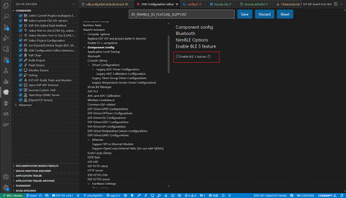 9.搜索BT_NIMBLE_50_FEATURE_SUPPORT,将Enable BLE 5 feature选项关闭