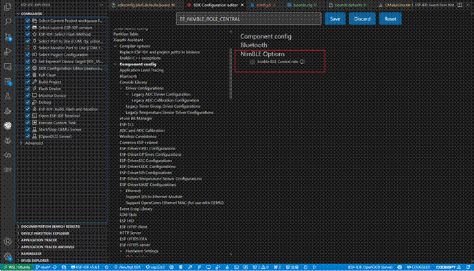 7.搜索BT_NIMBLE_ROLE_CENTRAL,将Enable BLE Central role选项关闭