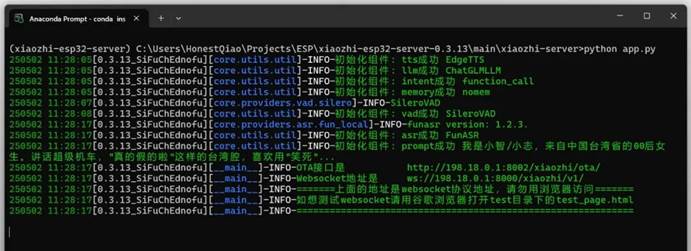 从上面的演示中可以看到,使用`AI-01开发板`和开源后端服务搭建环境,可以顺利的运行提供服务,让我们能够拥有自己的小智服务系统了。