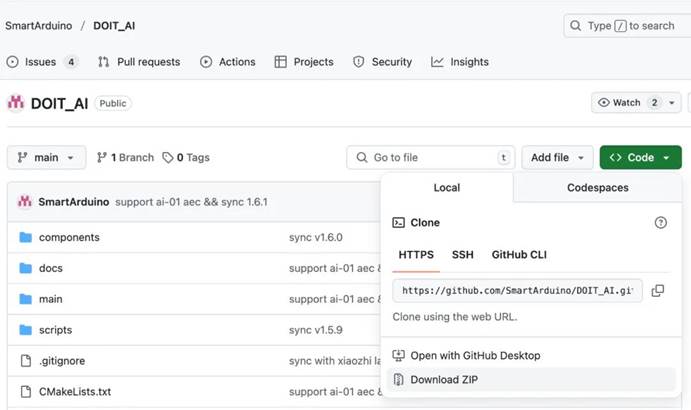 DOIT_AI的源码,可以从DOIT_AI https://github.com/SmartArduino/需要自己学会如何访问GitHub,并且会下载DOIT_AI最新版本代码: