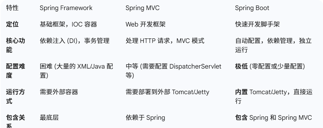 1. Spring, Spring Boot 和Spring MVC的关系以及区别