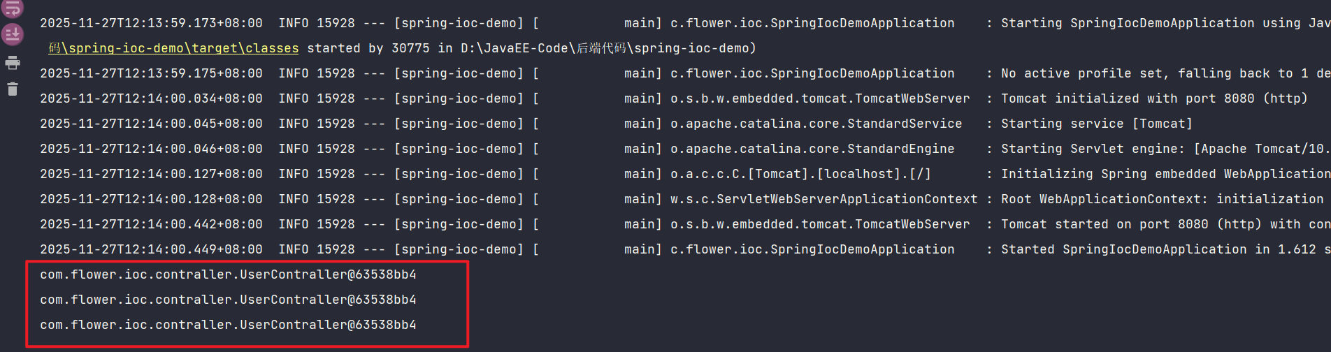 @Controller 注解,就是把这个对象交给Spring管理,Spring 框架启动时就会加载该类,把对象交给Spring管理,就是IoC思想