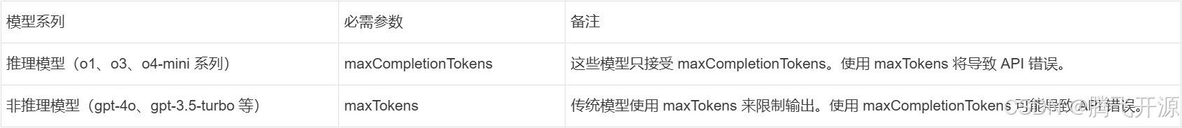 Azure OpenAI 对令牌限制参数有模型特定的要求: