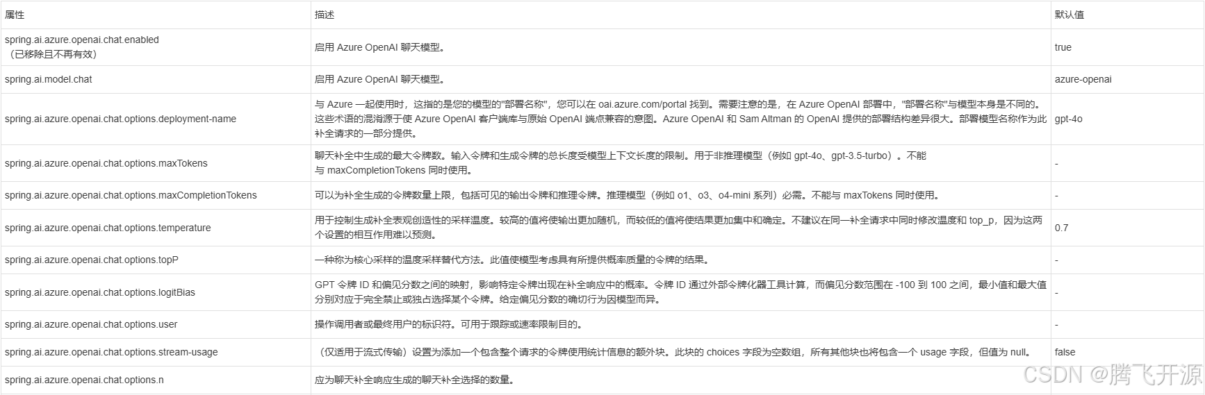 属性 spring.ai.azure.openai.chat.options.model 已更名为spring.ai.azure.openai.chat.options.deployment-name。