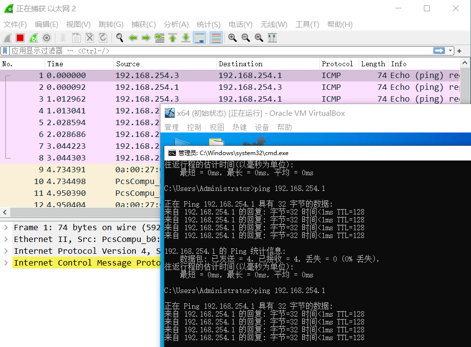 这样虚拟机(192.168.254.3)和真机(192.168.254.1)就都能ping通了