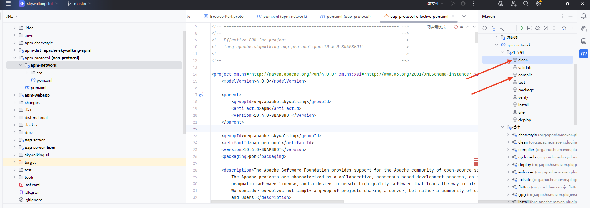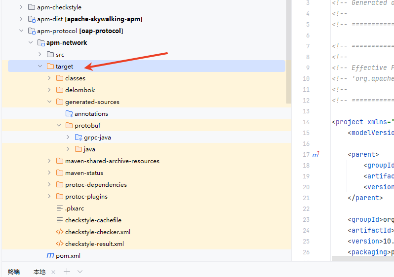 如重新生成apm-protocol/apm-network/target下的代码,使用