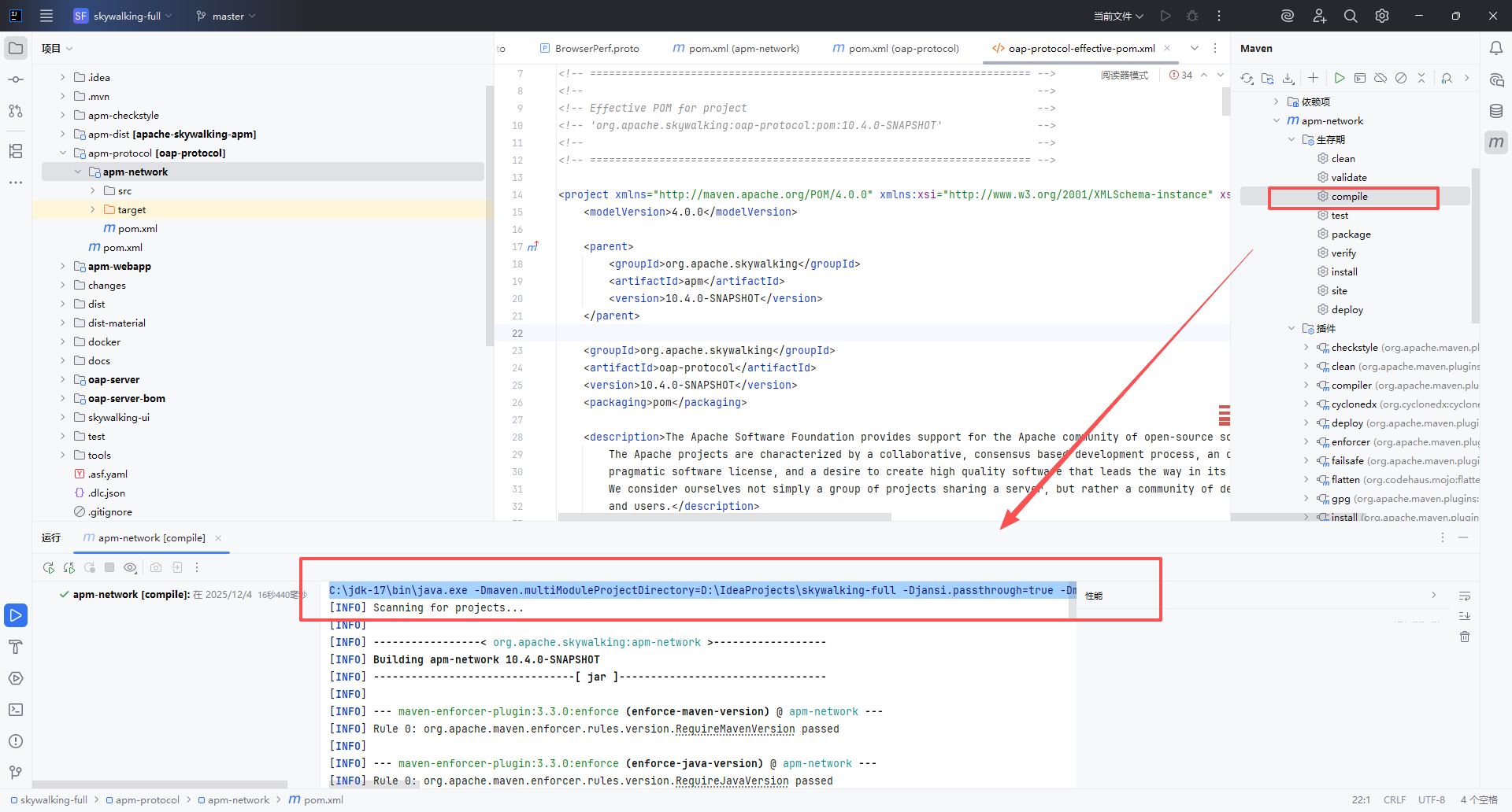 C:\jdk-17\bin\java.exe -Dmaven.multiModuleProjectDirectory=D:\IdeaProjects\skywalking-full -Djansi.passthrough=true -Dmaven.home=C:\Users\VISION16Pro\.m2\wrapper\dists\apache-maven-3.8.4-bin\52ccbt68d252mdldqsfsn03jlf\apache-maven-3.8.4 -Dclassworlds.conf=C:\Users\VISION16Pro\.m2\wrapper\dists\apache-maven-3.8.4-bin\52ccbt68d252mdldqsfsn03jlf\apache-maven-3.8.4\bin\m2.conf "-Dmaven.ext.class.path=C:\Program Files\JetBrains\IntelliJ IDEA 2025.1.4.1\plugins\maven\lib\maven-event-listener.jar" "-javaagent:C:\Program Files\JetBrains\IntelliJ IDEA 2025.1.4.1\lib\idea_rt.jar=57095" -Dfile.encoding=UTF-8 -classpath C:\Users\VISION16Pro\.m2\wrapper\dists\apache-maven-3.8.4-bin\52ccbt68d252mdldqsfsn03jlf\apache-maven-3.8.4\boot\plexus-classworlds-2.6.0.jar;C:\Users\VISION16Pro\.m2\wrapper\dists\apache-maven-3.8.4-bin\52ccbt68d252mdldqsfsn03jlf\apache-maven-3.8.4\boot\plexus-classworlds.license org.codehaus.classworlds.Launcher -Didea.version=2025.1.4.1 compile