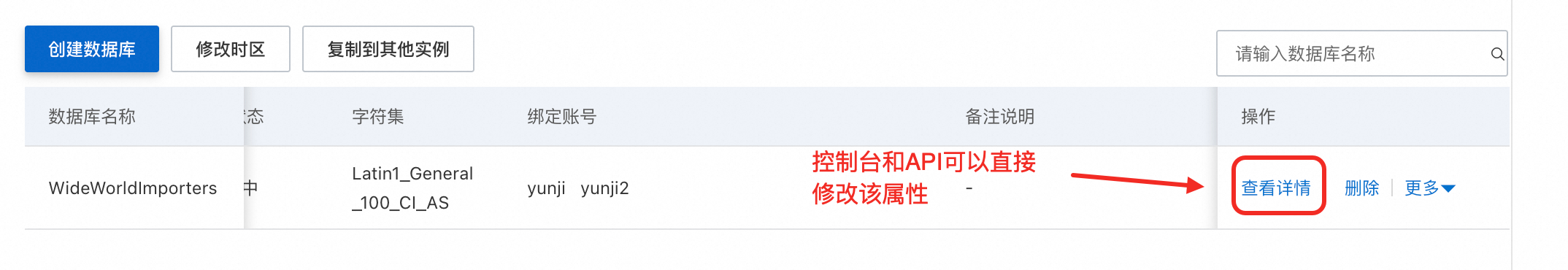 图:阿里云RDS SQL Server对于数据库级别的属性管理
