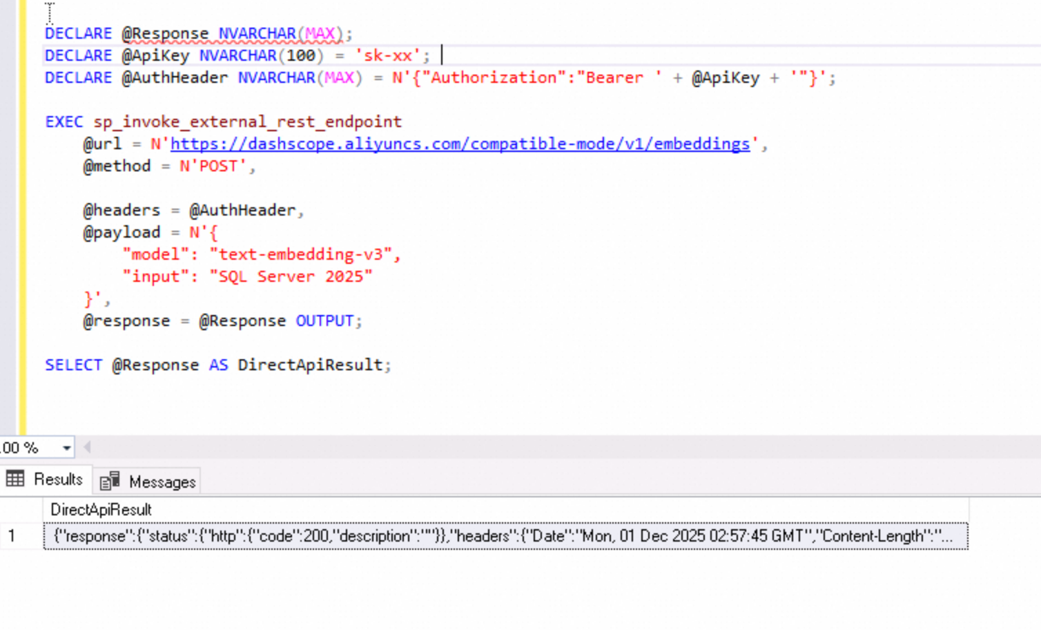 DECLARE @q VECTOR(3) = '[0.1, 0.2, 0.3]';