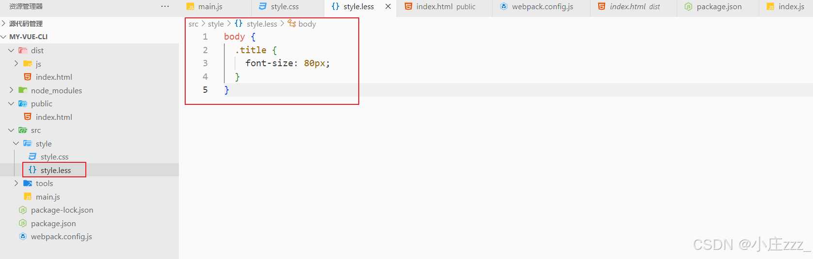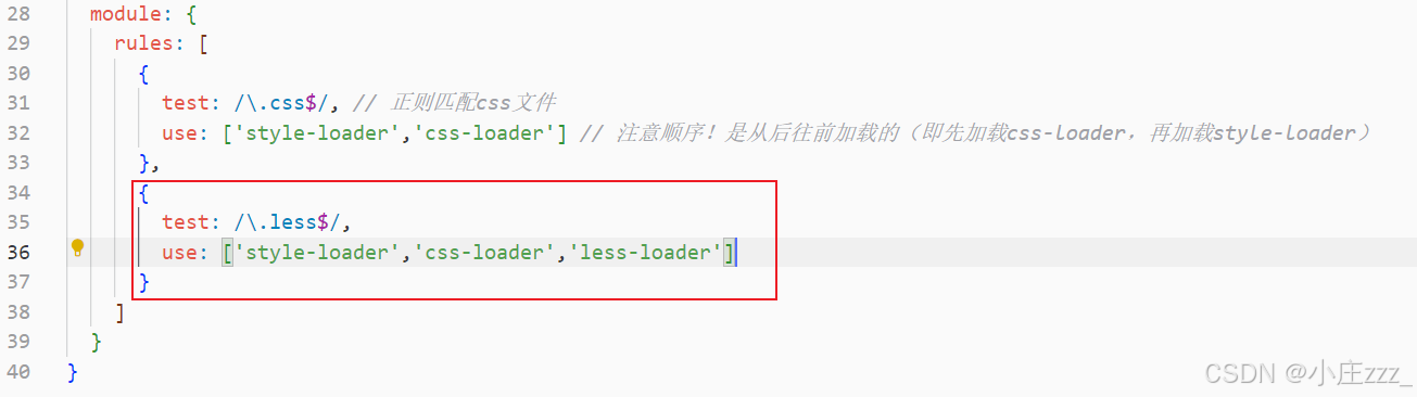 同理,如果我们项目中想采用less的写法,则需要先下载less-loader来处理.less结尾的文件