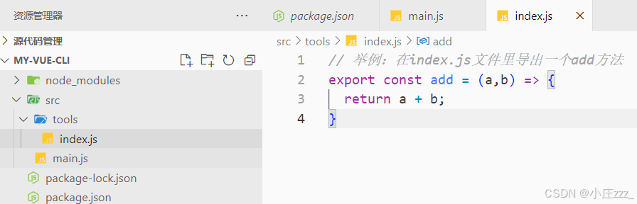 (1)、在项目的根目录下,src文件夹通常存放项目的源代码,我们在src文件夹下新建一个main.js文件和tools文件夹: