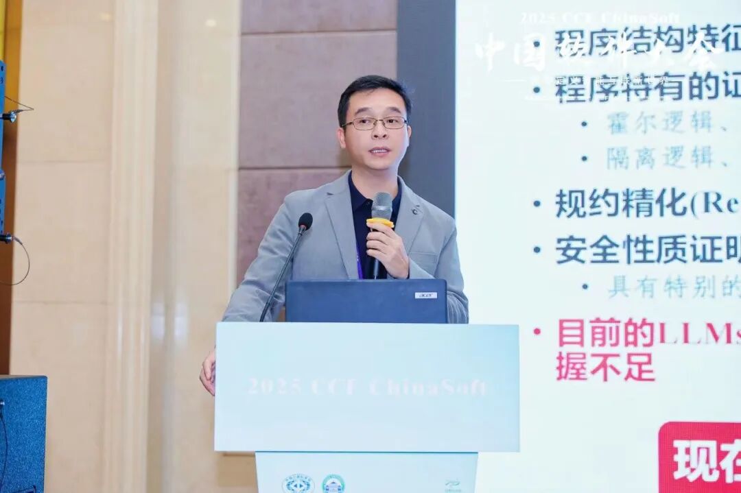 **望安科技创始人、浙江大学博士生导师赵永望教授作《AI赋能的形式化验证技术探索》报告。**形式化验证通过数理逻辑方法对系统进行规约、开发与验证,已在航空航天等安全关键领域得到成熟应用,并逐步扩展到互联网领域,包括 Amazon、Google、Microsoft 等企业都在规模化使用。然而,面对大规模软件,形式化验证技术仍面临建模工作量大、形式化验证状态空间爆炸或证明规模巨大的难题。赵永望教授表明,AI/LLM 技术为形式化验证应用带来了新的机遇,并在报告中系统阐述了 AI 赋能形式化验证的核心思路,同时分析其关键技术瓶颈与未来发展方向。