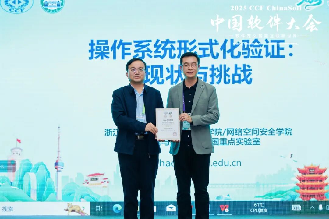 赵永望教授作《操作系统形式化验证:现状与挑战》报告。 操作系统的任何错误都可能引发系统崩溃或被攻击,影响整体安全与可靠性。传统"事后补丁式"安全方案往往治标不治本,无法避免缺陷反复出现。基于原生安全 理念,操作系统需要从架构设计开始就建立可信基础,而形式化验证正是实现这一目标的关键技术。通过数学化的规约描述与严格证明,可在开发早期发现深层逻辑漏洞,确保系统调用、调度机制、权限管理等模块符合预设安全与功能要求。报告对国内外研究现状、关键技术难点以及工程化挑战做出了系统分析,为未来发展提供了方向。