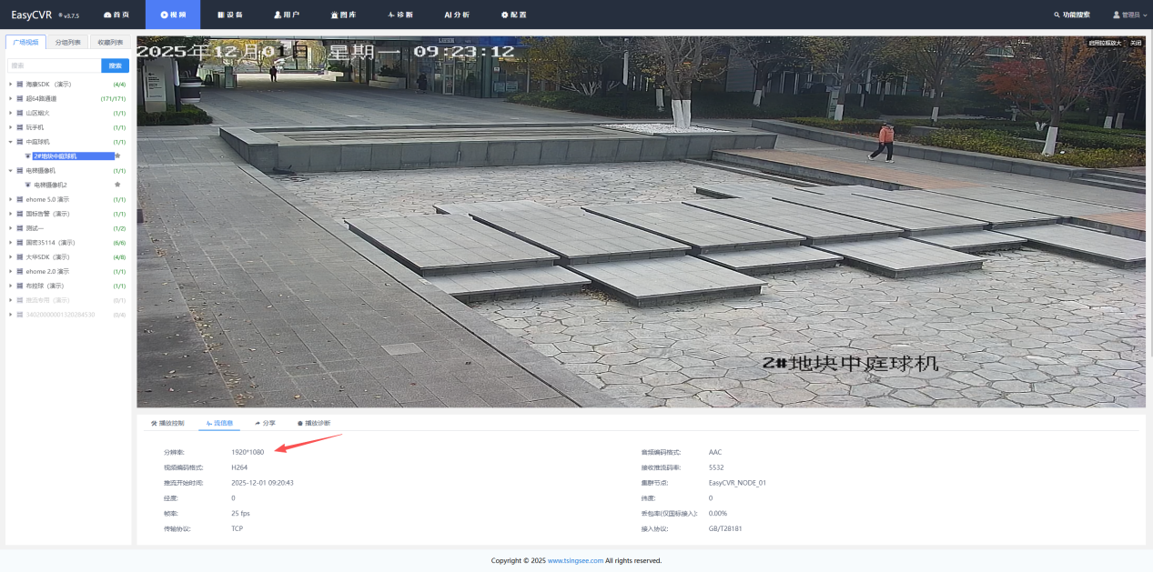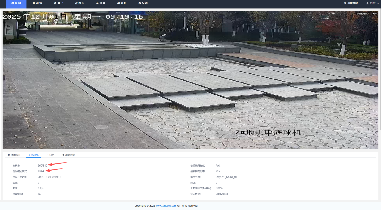 经过详细排查发现,虽然用户未对具体设备开启转码功能,但平台的全局转码功能处于开启状态。这一全局设置导致所有接入设备都受到影响,系统强制将原始视频流(原为2K分辨率+H.265编码格式)统一转码为960分辨率+H.264编码格式,从而造成平台显示的配置信息与设备真实配置不匹配。