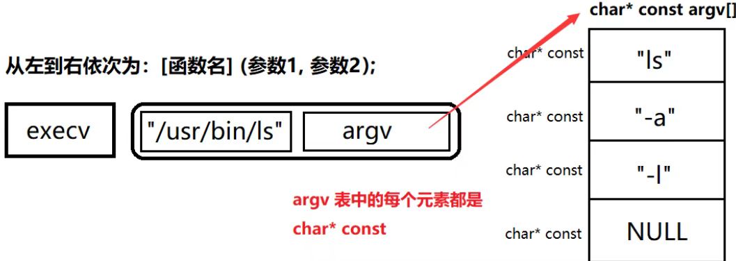 与 execl 函数不同,execv 是以表的形式进行参数传递的。