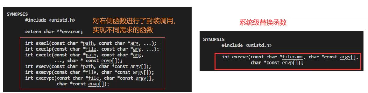 注意: 这七个函数只有在程序替换失败后才会有返回值,返回 -1,程序替换成功后不返回。