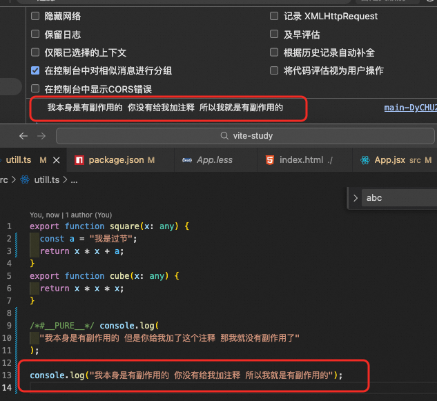 console.log("我本身是有副作用的 你没有给我加注释 所以我就是有副作用的");