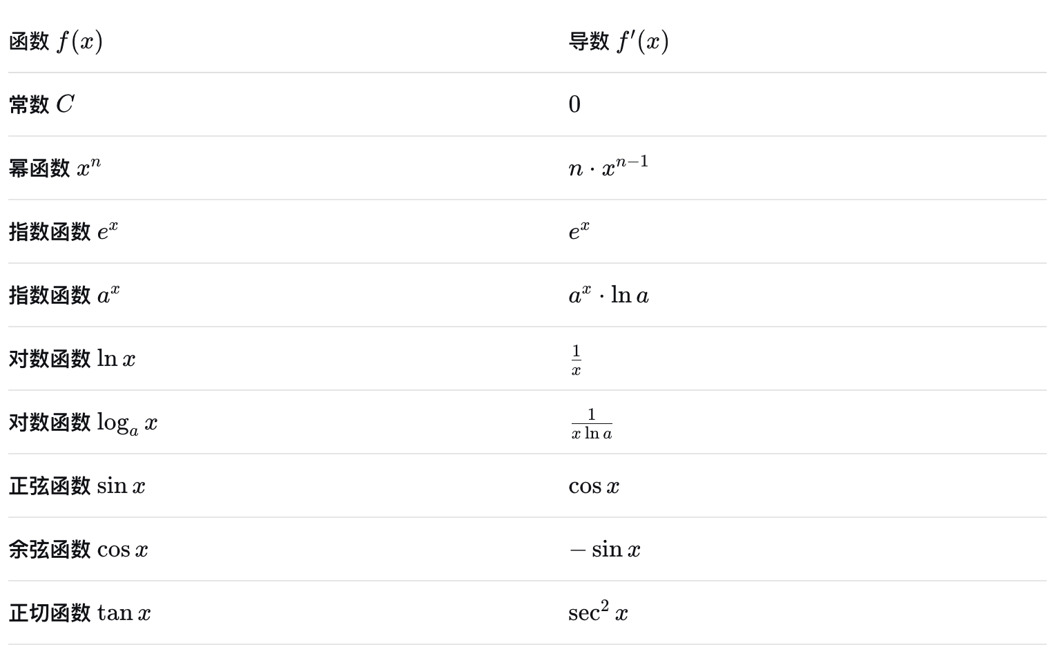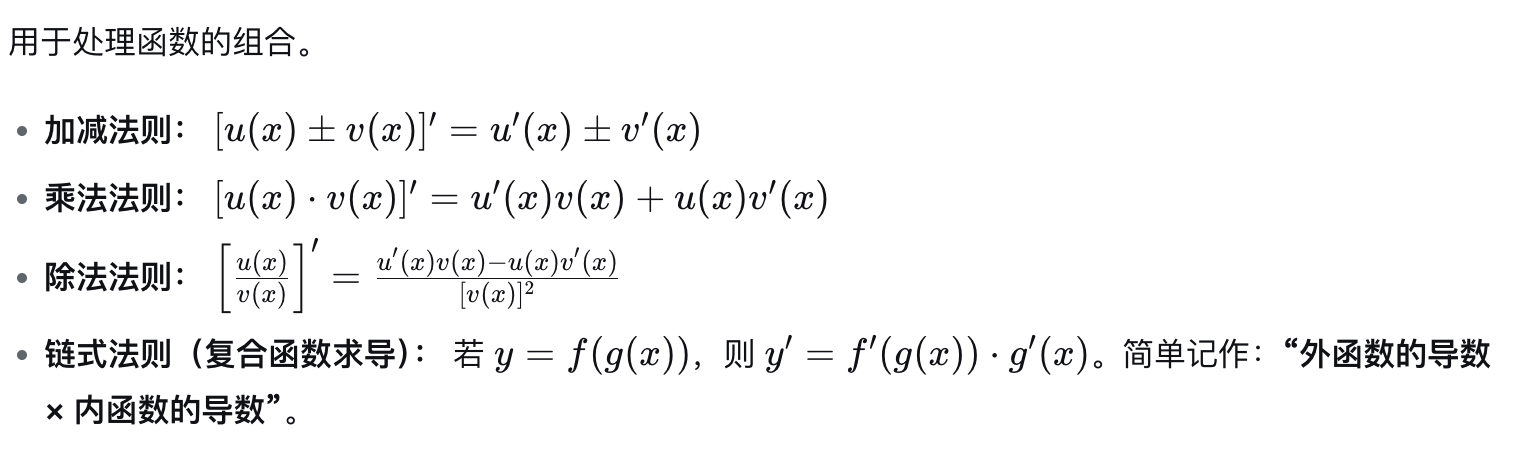 从这些基础出发,你可以计算绝大多数初等函数的导数。