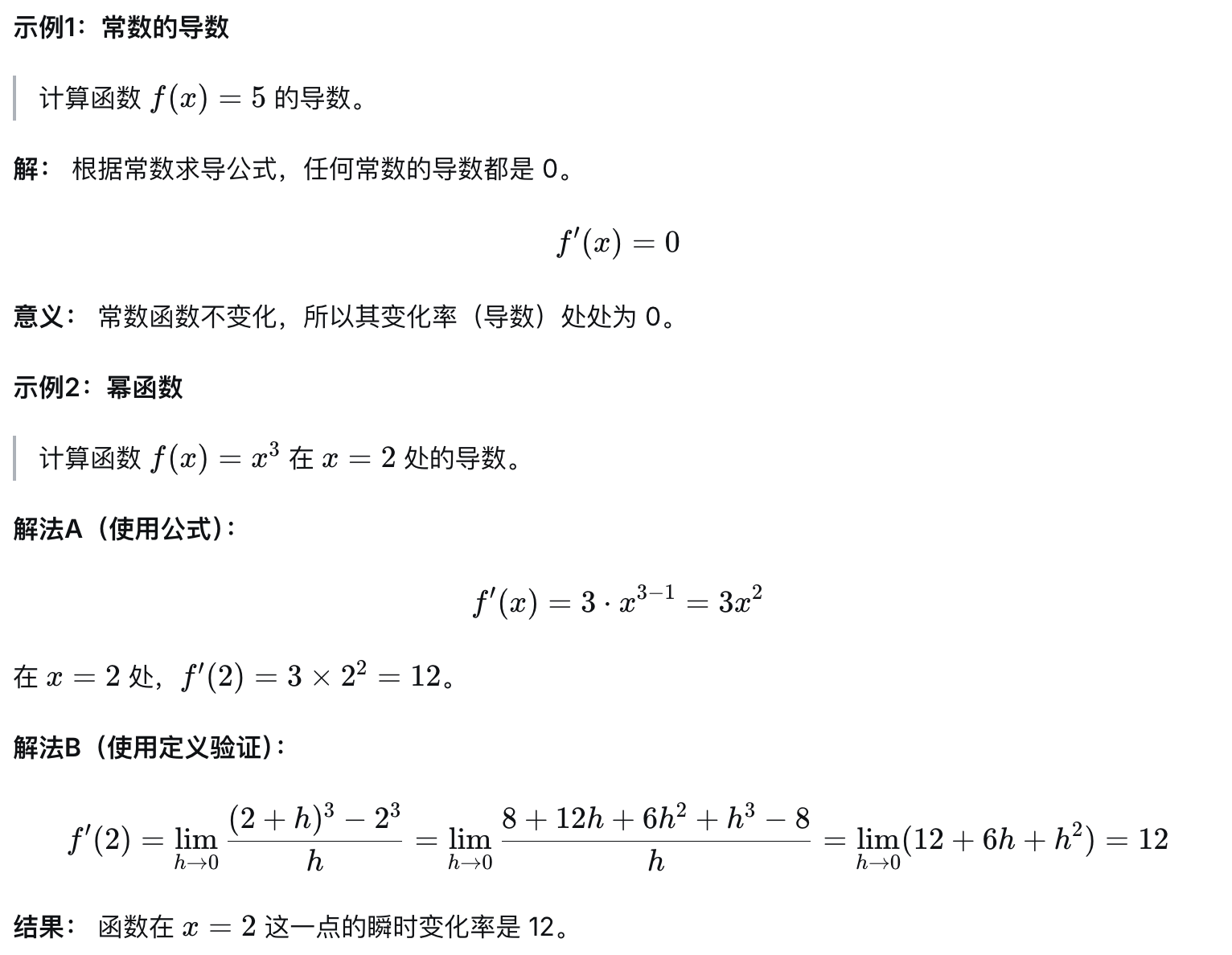 这个公式可以理解为"平均变化率"在两点无限接近时的极限。