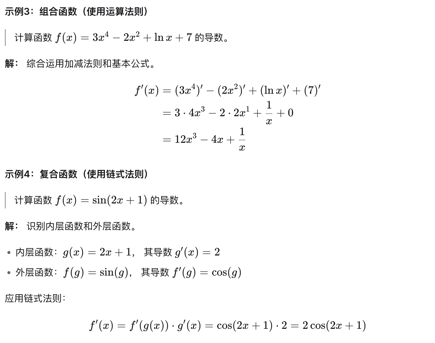 - 识别函数结构(是乘积、商还是复合)。