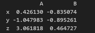 df = pd.DataFrame(arr, columns=['A', 'B'], index=['x', 'y', 'z'])