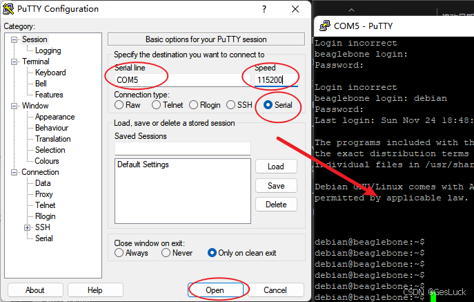 - 然后用SSH连接(ssh debian@<BBB的IP>)