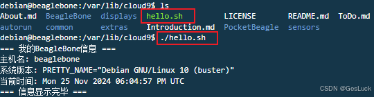 bashchmod +x hello_beaglebone.sh # 添加执行权限 ./hello_beaglebone.sh # 运行脚本