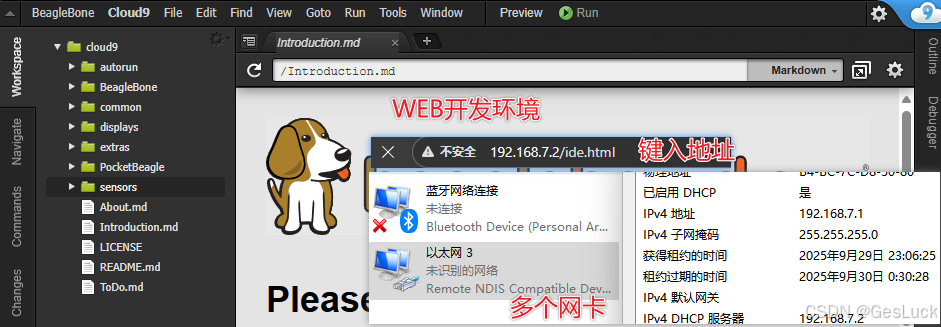 - 通过浏览器访问 http://192.168.7.2。打开BBB自带的网页版开发环境。------Cloud9 IDE!