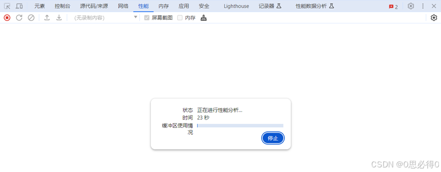 在你完成操作后,点击Stop(停止)按钮,停止记录性能数据。