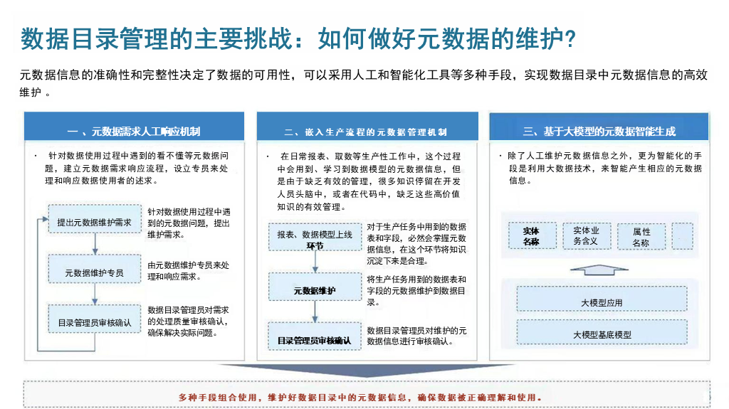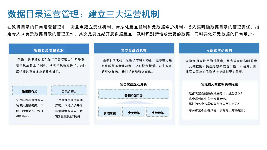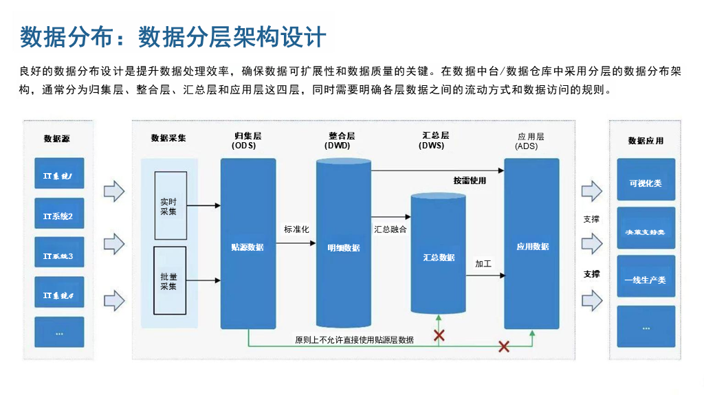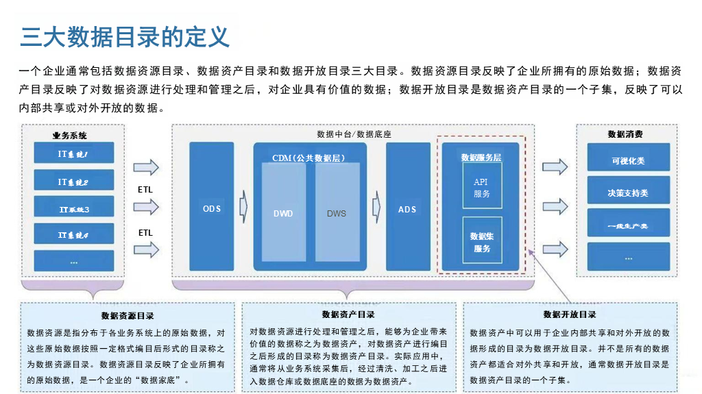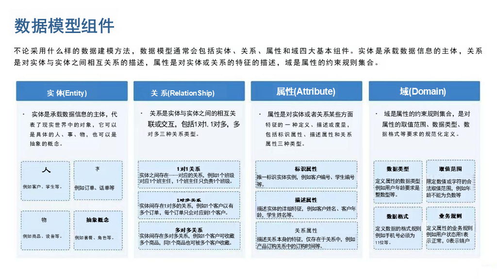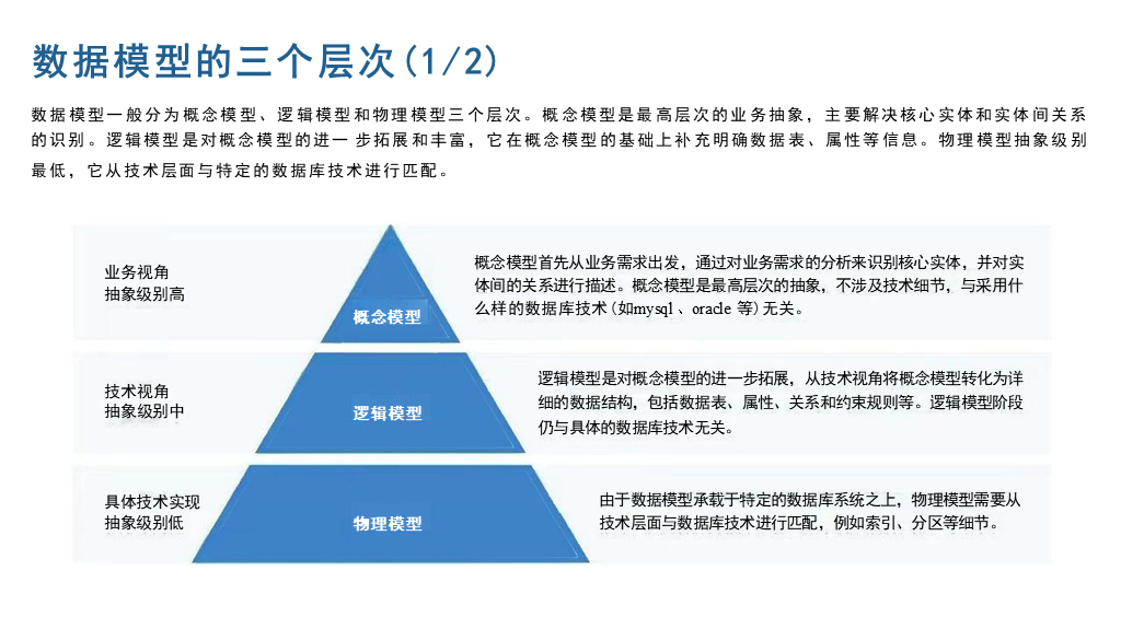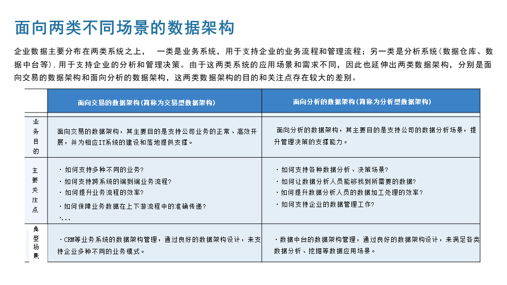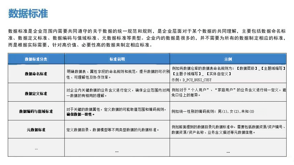 本文档为《数据架构管理培训》课件,适配企业 IT 部门(数据架构设计 / 数据建模岗、数据仓库 / 数据中台运维岗)、数据管理部门(数据治理 / 元数据管理岗)、业务部门(数据分析 / 数据应用岗),以及数据架构咨询机构、高校数据管理相关专业教研团队。核心围绕数据架构管理全体系,以 "理论 + 实践" 为框架:先解析数据架构定义(DAMA、华为、DCMM 等组织视角)与两类场景架构(面向交易架构支撑业务流程,面向分析架构服务决策),明确 "找得到、看得懂、用得好、管得好" 四大目标;再拆解四大核心组件,含数据目录(建设标准 / 编制流程 / 运营机制,区分资源 / 资产 / 开放目录)、数据模型(实体 / 关系 / 属性 / 域组件,概念 - 逻辑 - 物理三层模型,星型 / 雪花模型等方法)、数据标准(命名 / 定义 / 编码 / 元数据标准)、数据分布(归集 - 整合 - 汇总 - 应用四层架构及各层定位);结合华为实践、电商订单建模等案例,配套元数据维护、数据分类等工具模板,为企业搭建规范数据架构、提升数据管理效率与应用价值提供系统化培训指引。