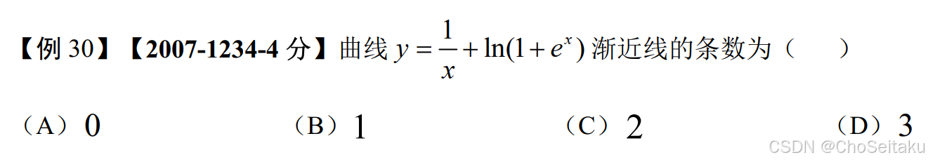 改题:曲线y=1x2−3x+2+ln(2+ex)渐近线的条数为() \text{改题:} \\ \text{曲线}y = \frac{1}{x^2 - 3x + 2} + \ln(2+e^x)\text{渐近线的条数为()} 改题:曲线y=x2−3x+21+ln(2+ex)渐近线的条数为()