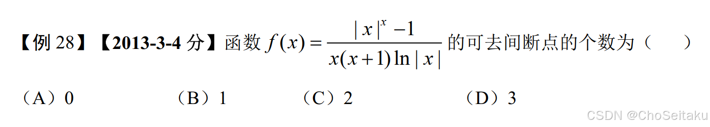 改题:函数f(x)=∣x∣(x2−3x+2)sinx−1x(x+1)(x−2)ln∣x∣sinx的无穷间断点的个数为() \text{改题:} \\ \text{函数}f(x) = \frac{|x|^{(x^2-3x+2)\sin x} - 1}{x(x+1)(x-2)\ln|x|\sin x}\text{的无穷间断点的个数为()} 改题:函数f(x)=x(x+1)(x−2)ln∣x∣sinx∣x∣(x2−3x+2)sinx−1的无穷间断点的个数为()