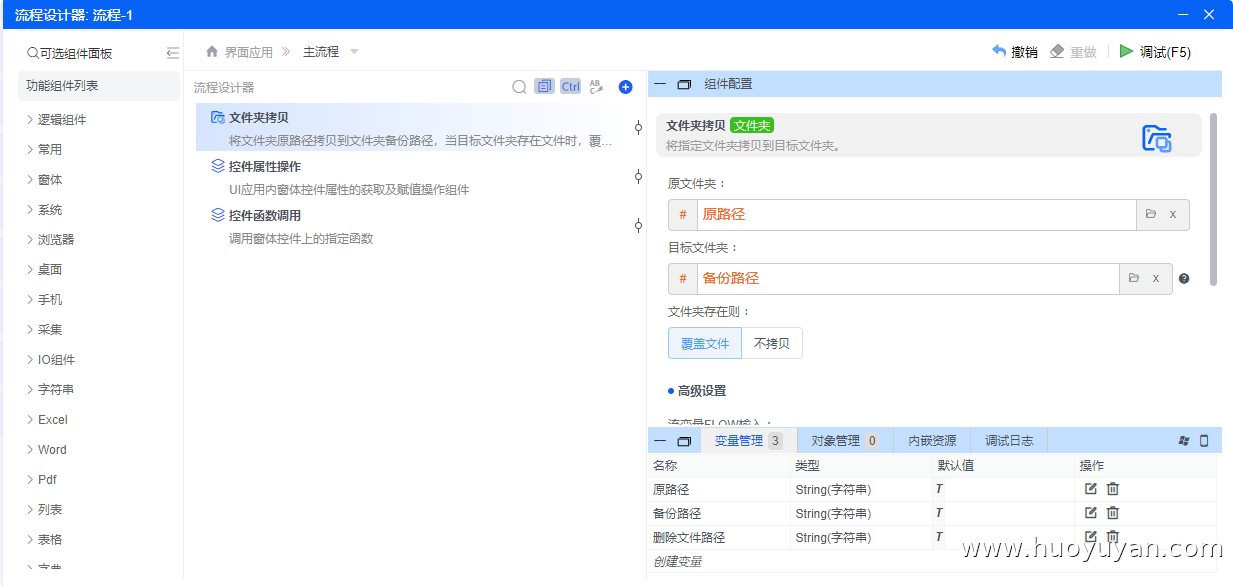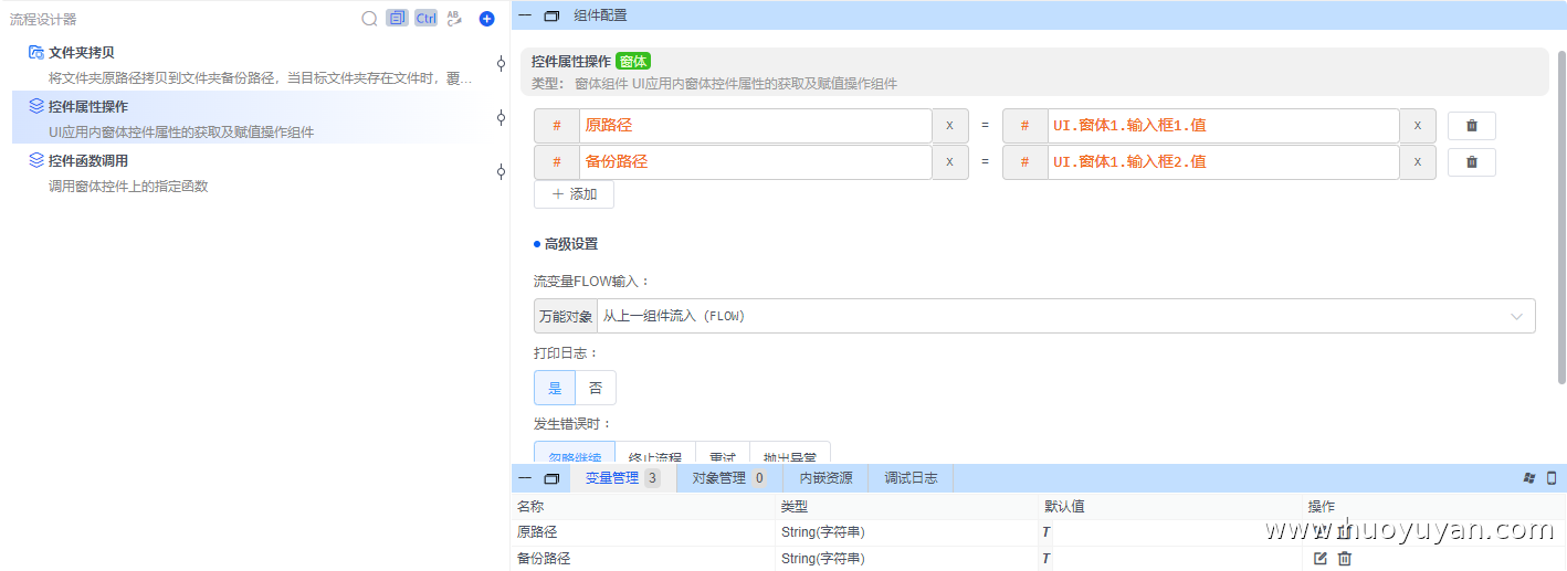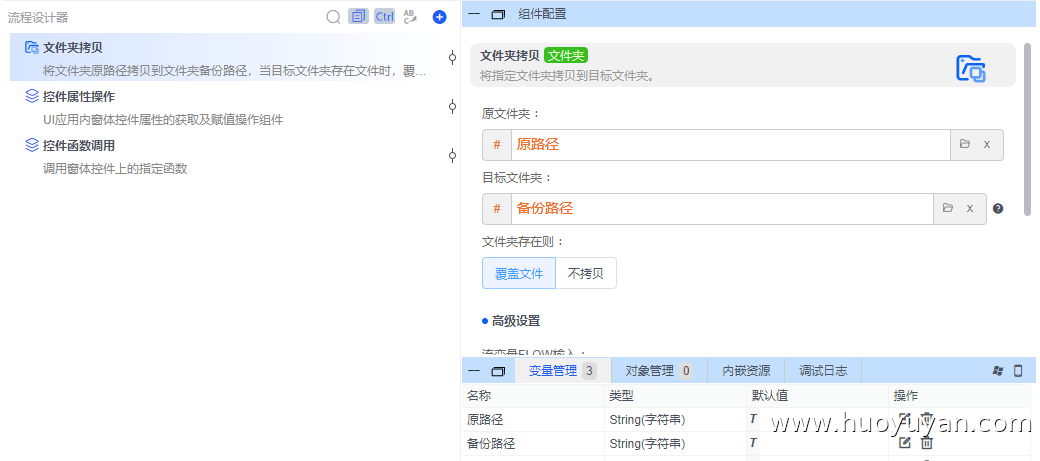 组件1:文件夹拷贝 ,创建变量原路径 备份路径,