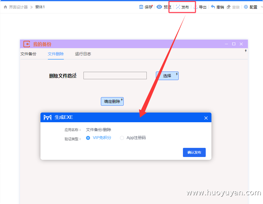 火语言 RPA 通过 发布 功能,将设计完成的 "界面配置 + 流程逻辑" 打包为独立 EXE 文件,内置运行时依赖库,确保脱离火语言客户端后仍可正常执行,实现工具的轻量化分发与使用。