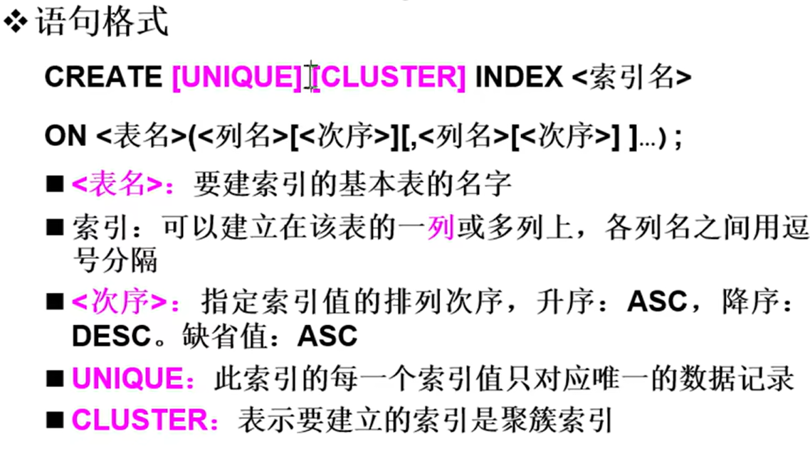 数据定义:模式、表、索引