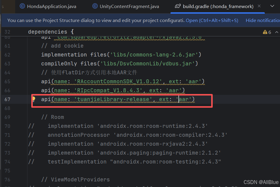 2、用Android Studio打开导出的unity工程,按照步骤把tuanjieLibrary打成aar包,期间可能需要配置gradle的版本