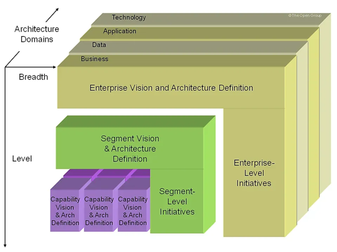 **技术架构:**支持部署业务,数据和应用程序服务所需的逻辑软件和硬件功能。这包括IT基础设施,中间件,网络,通信,处理和标准。