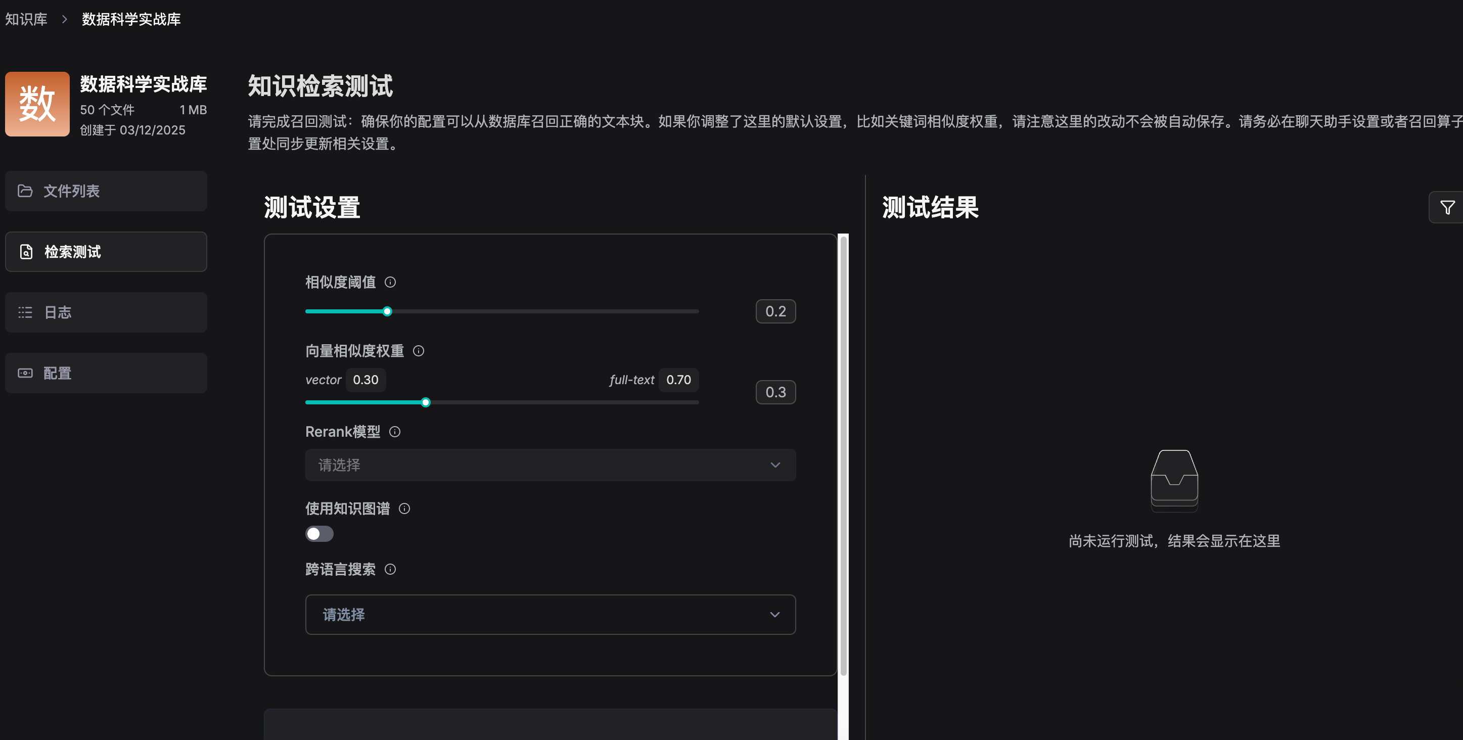 - 如果选择了重排模型,则加权关键词相似性将与加权向量重排分数结合。