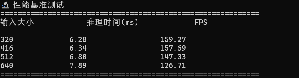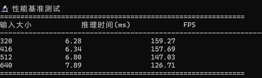 print(f"{'模型':<15} {'输入大小':<15} {'推理时间(ms)':<20} {'吞吐量(FPS)':<20}")