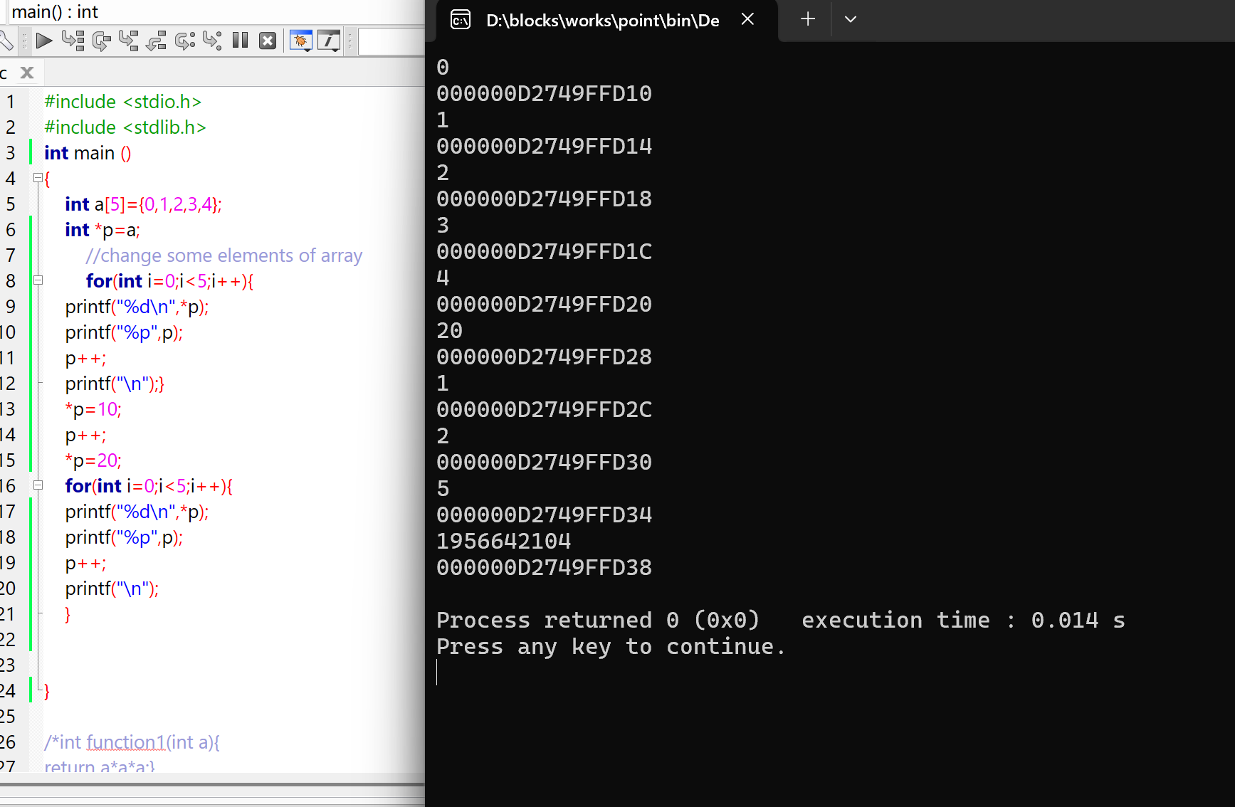 在改变数组某些元素值的时候,我尝试用p++来改变a[1]的值,但是后面遍历的时候a[0]="a[1]"并且a[0]没有了。