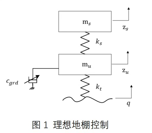 先说地棚控制的精髓------想象车身上绑了个钩子钩住天空,车身一动就被这个虚拟的"天钩"拽住。实际操作中咱用阻尼器模拟这个效果,核心公式就一行:Fc = C sky * vbody。这里Csky是等效阻尼系数,v_body是车身速度。注意这跟被动悬架最大的区别在于,被动悬架用的是车身与车轮的相对速度,而地棚控制只管车身的绝对速度。
