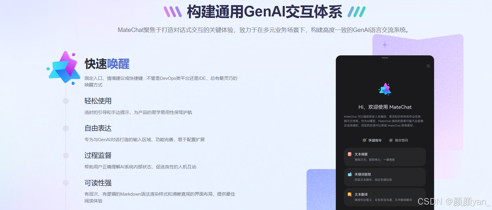 MateChat 的设计理念与 DevUI 高度一致,遵循"体验无边界,业务无侵害"原则,让 AI 能力真正融入业务流程而不是生硬叠加。