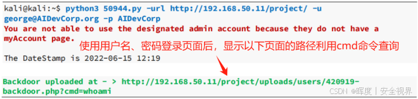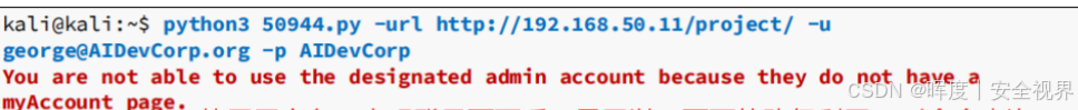 bash$ python3 50944.py -url http://192.168.50.10/project/ -u george@AIDevCorp.org -p AIDevCorp注: