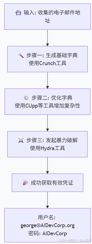 下图清晰地展示了从信息收集到成功破解的完整工作流:
