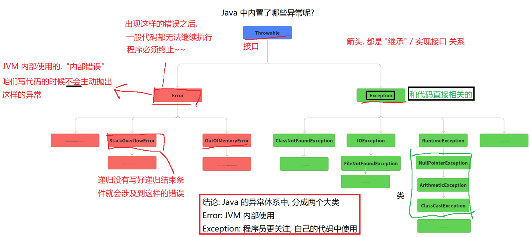 java中不同类型的异常 ,都有与其对应的类来进行描述。