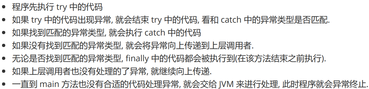(1)try块内 抛出异常位置之后的代码将不会被执行