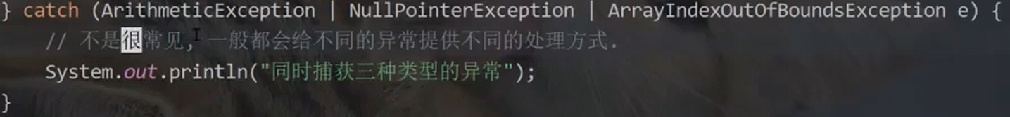 (4)如果多个异常 的处理方式是完全相同, 也可以合并到同一个 catch 中。